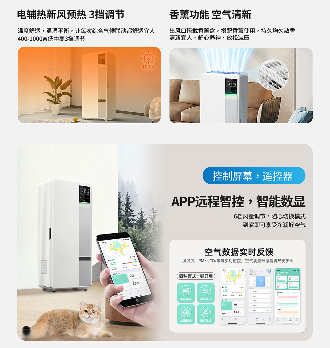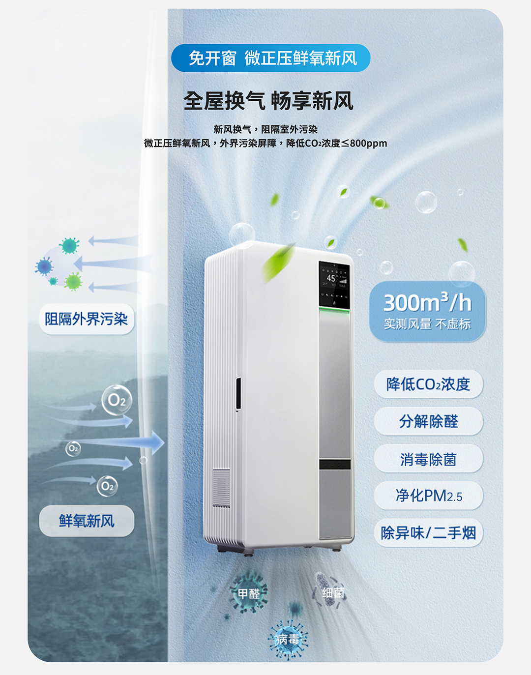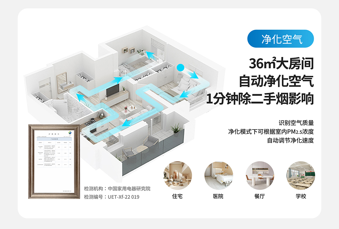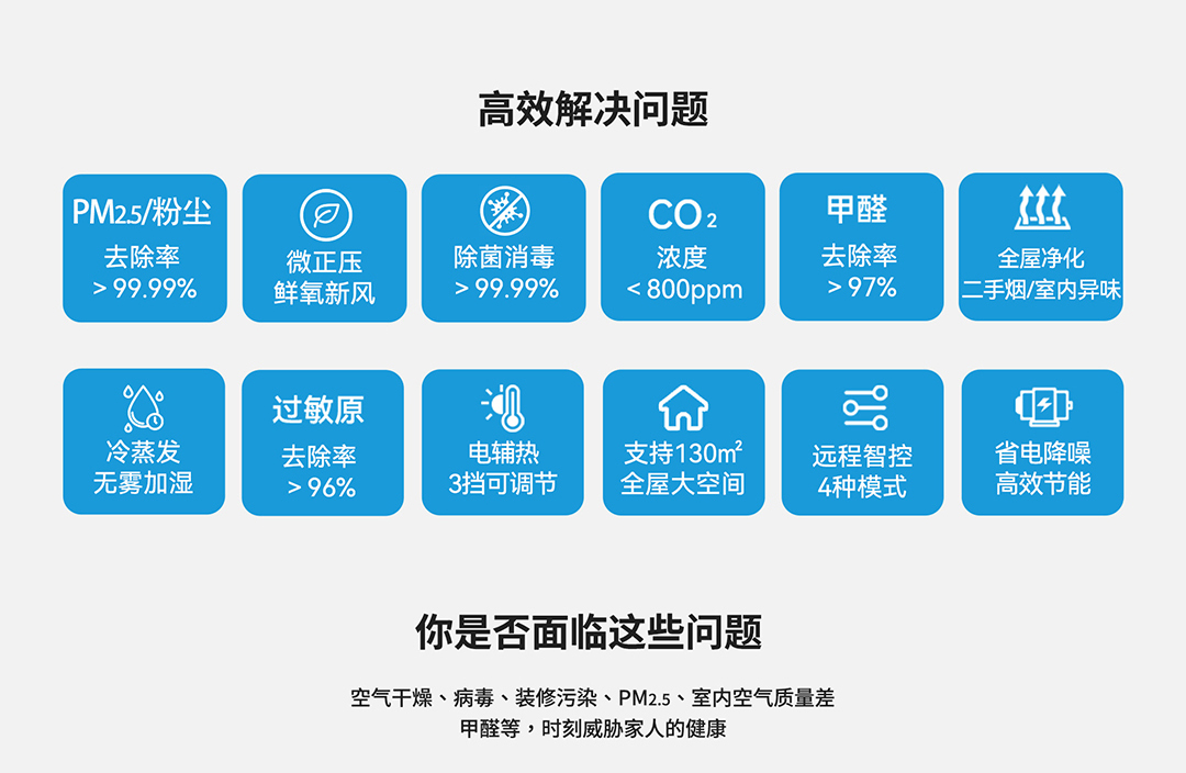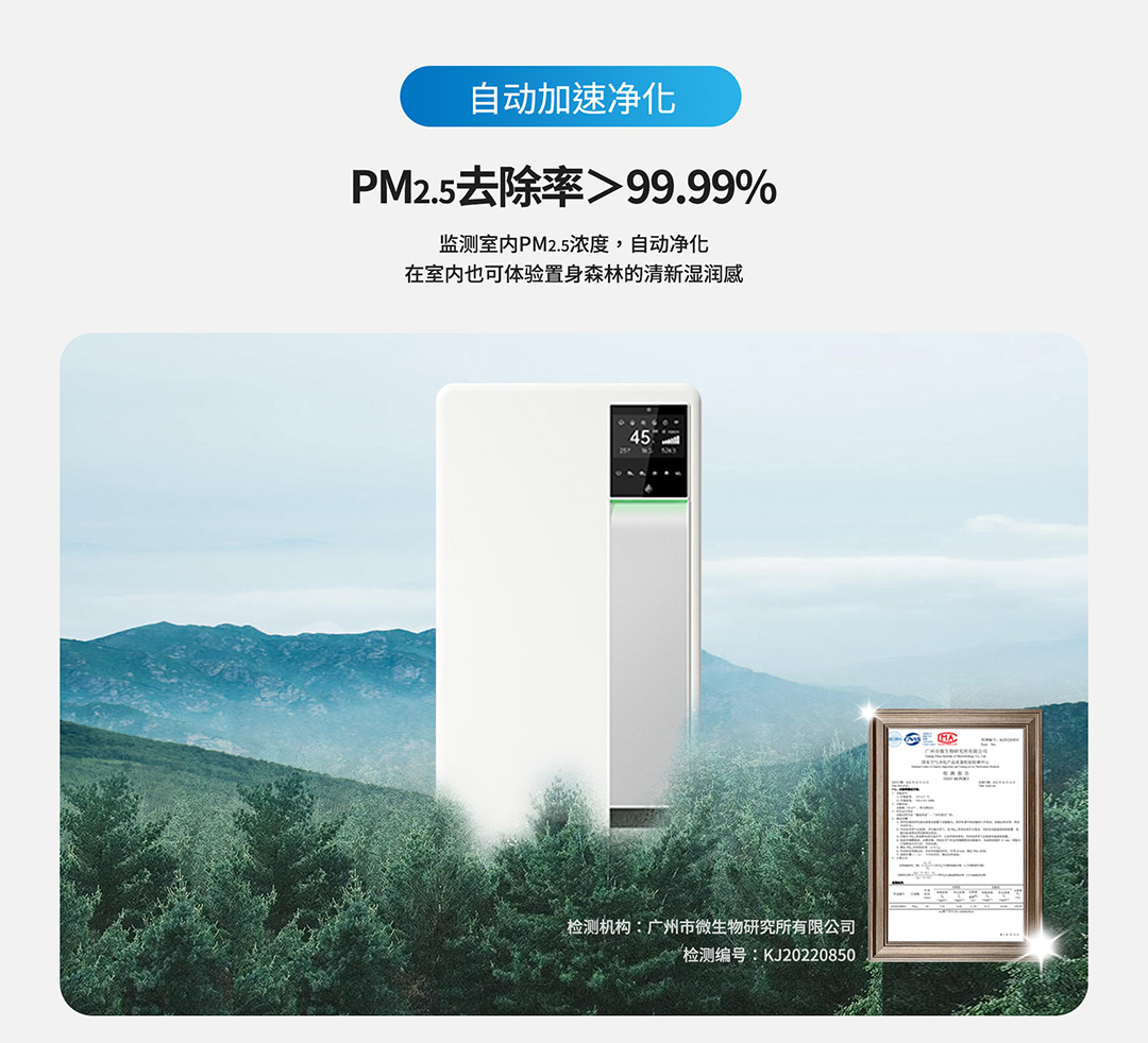 集保濕、除菌、新風(fēng)、凈化4大功能于一身,四效合一,一臺小巧的機器就可以取代加濕機、消毒機、新風(fēng)機、凈化機,使室內(nèi)空氣濕潤、無菌、鮮氧、潔凈,不僅大大提升舒適度,讓我們有如身臨山澗般身心舒暢,還能遠離污染,生活在更健康的環(huán)境中,特別適合于空氣污染嚴(yán)重、室內(nèi)干燥、存在裝修污染、門窗氣密性較好而導(dǎo)致室內(nèi)缺氧等各類場合。